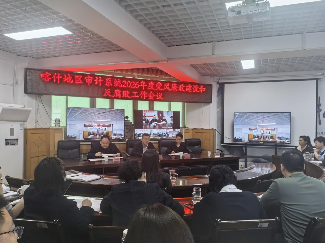 近日,喀什地区审计局召开全地区审计机关党风廉政建设工作视频会议。会议深入学习贯彻二十届中央纪委四次全会精神,全面总结2025年全地区审计机关党风廉政建设成效,系统部署2026年重点任务并集中观看警示教育专题片。行署副秘书长、地区纪委监委派驻财政局纪检监察组组长出席会议并讲话;局党组副书记、局长传达上级有关会议精神。