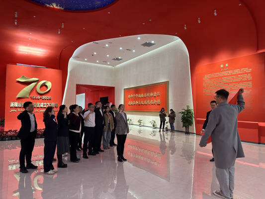 随后,全体党员前往乌鲁木齐文化中心展览馆参观“新疆维吾尔自治区成立70周年主题成就展”。展览通过丰富的图片、文字和实物,生动展现了几十年来自治区在经济发展、社会进步、民生改善等方面的巨大变化。党员干部在参观过程中,深感震撼,倍受鼓舞,不时驻足交流,感慨新疆发展的日新月异,为建设社会主义现代化新疆倍感自豪。